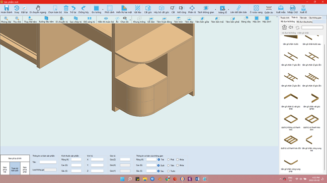 Với tính năng này, người dùng hoàn toàn có thể dễ dàng tạo hình cũng như lập trình gia công xẻ rãnh trước khi uốn với bộ chi tiết có sẵn trong thư viện. Sau khi điều chỉnh các kích thước cần thiết, chúng ta sẽ có được mẫu kệ hoàn chỉnh đáp ứng được yêu cầu thiết kế ban đầu.